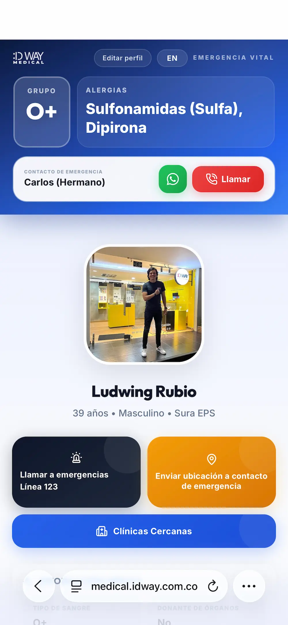 Tu información personal y de contacto + código QR con perfil médico de emergencia y perfil social actualizables y disponibles 24/7.